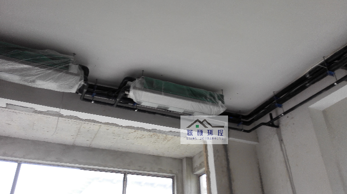 室内风机盘管和管道施工实景。